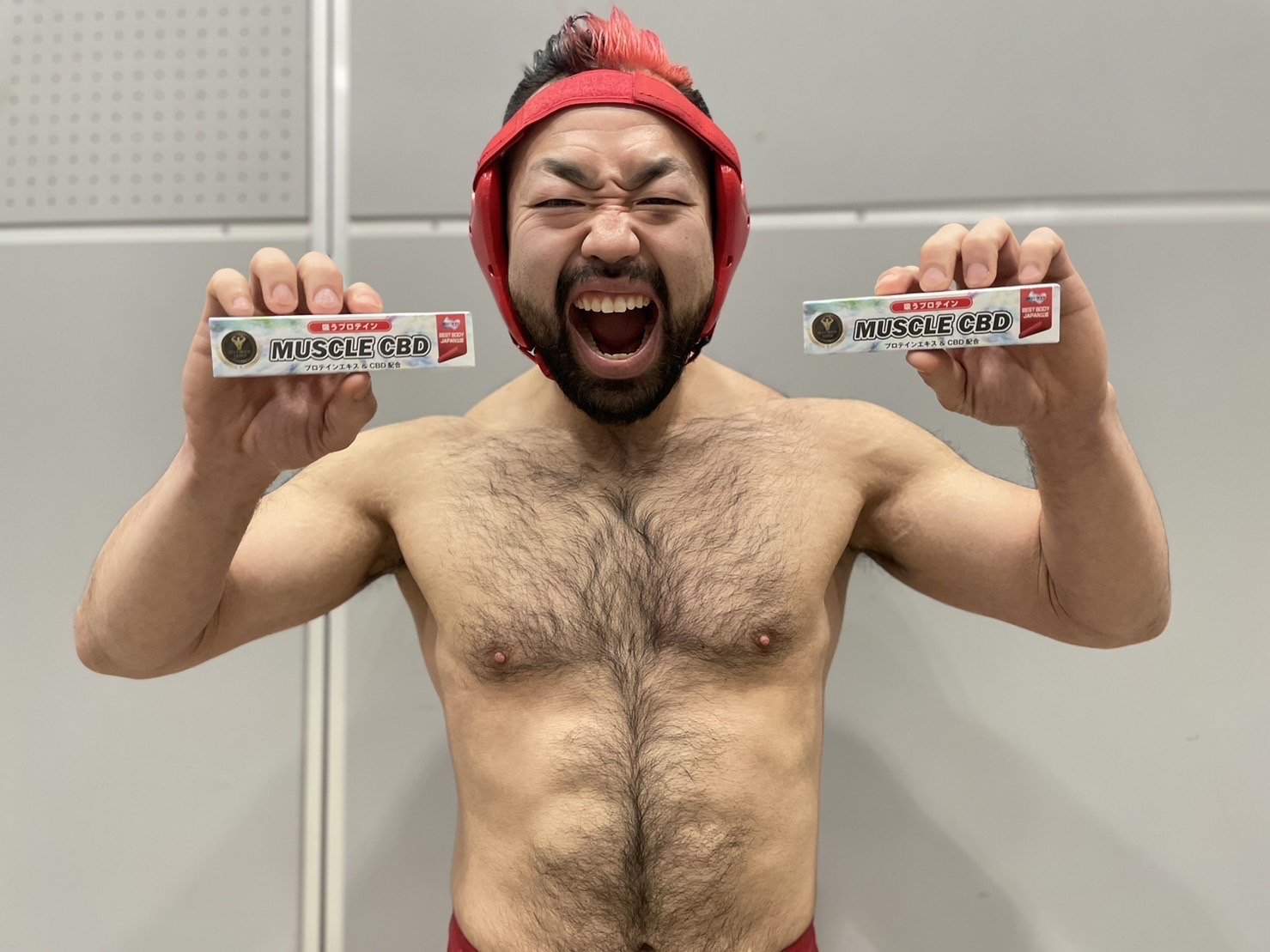 うぉぉぉぉぉ!俺が!胸毛プロレスラーの八須拳太郎だぁ~!!全日本パワーリフティング83kg級2位の実績を持つ俺も、今はこのマッスルCBDを使っている!